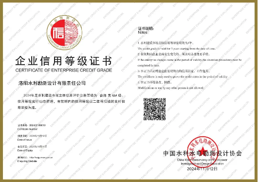 洛陽(yáng)水利勘測(cè)設(shè)計(jì)有限責(zé)任公司前身成立于1959年,經(jīng)過(guò)60多年的技術(shù)積累,現(xiàn)已成為集國(guó)家頒發(fā)的巖土工程勘察甲級(jí)資質(zhì)、水利工程設(shè)計(jì)甲級(jí)資質(zhì)、水利水電咨詢單位甲級(jí)資信證書(shū)和工程測(cè)量、測(cè)繪資質(zhì)、水資源論證、水文水資源調(diào)查評(píng)價(jià)、生產(chǎn)建設(shè)項(xiàng)目水土保持方案編制、建筑工程設(shè)計(jì)等資質(zhì)證書(shū)于一體的綜合性科技服務(wù)企業(yè)。
