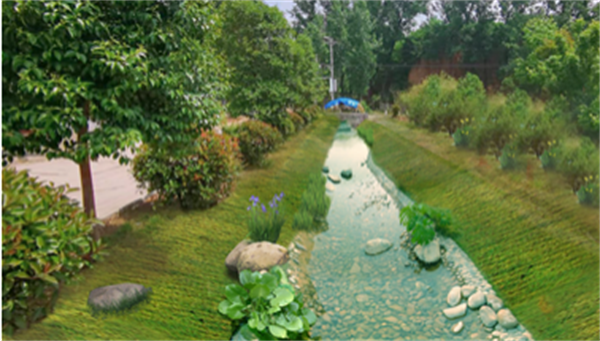 該工程位于新安縣老城區(qū)內(nèi),總長(zhǎng)約3.6km,通過(guò)對(duì)河道清淤疏浚,岸坡采用噴播進(jìn)行生態(tài)防護(hù),堤頂設(shè)置景觀節(jié)點(diǎn),對(duì)澗河進(jìn)行生態(tài)綜合整治。本次設(shè)計(jì)在滿足防洪安全的前提下,以生態(tài)修復(fù)為路徑,打造出功能綜合的生態(tài)水岸。